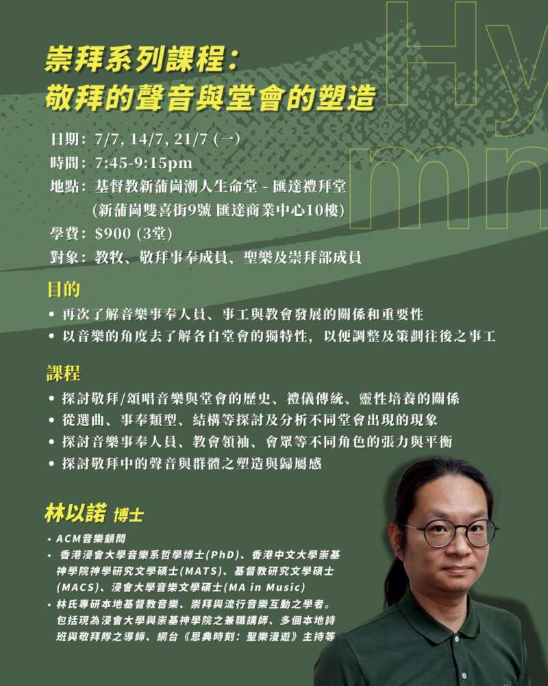 對象︰教牧、敬拜事奉成員、聖樂及崇拜部成員
