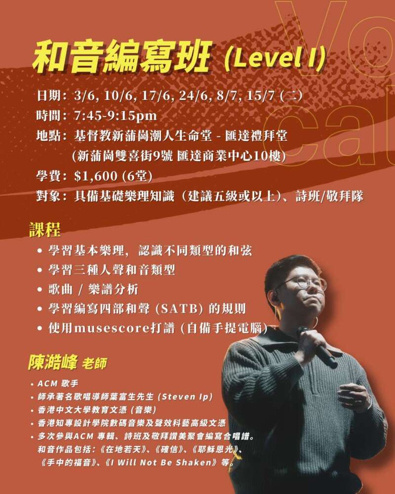對象︰具備基礎樂理知識(建議五級或以上)、詩班/敬拜隊