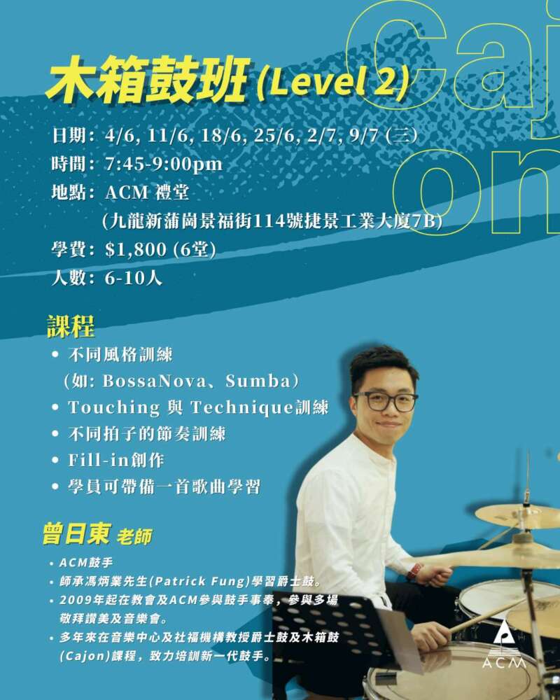 曾氏多年以私人開授、在音樂中心及社福機構教授爵士鼓及木箱鼓(Cajon)課程,致力培訓新一代鼓手。