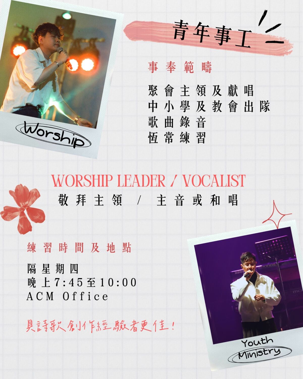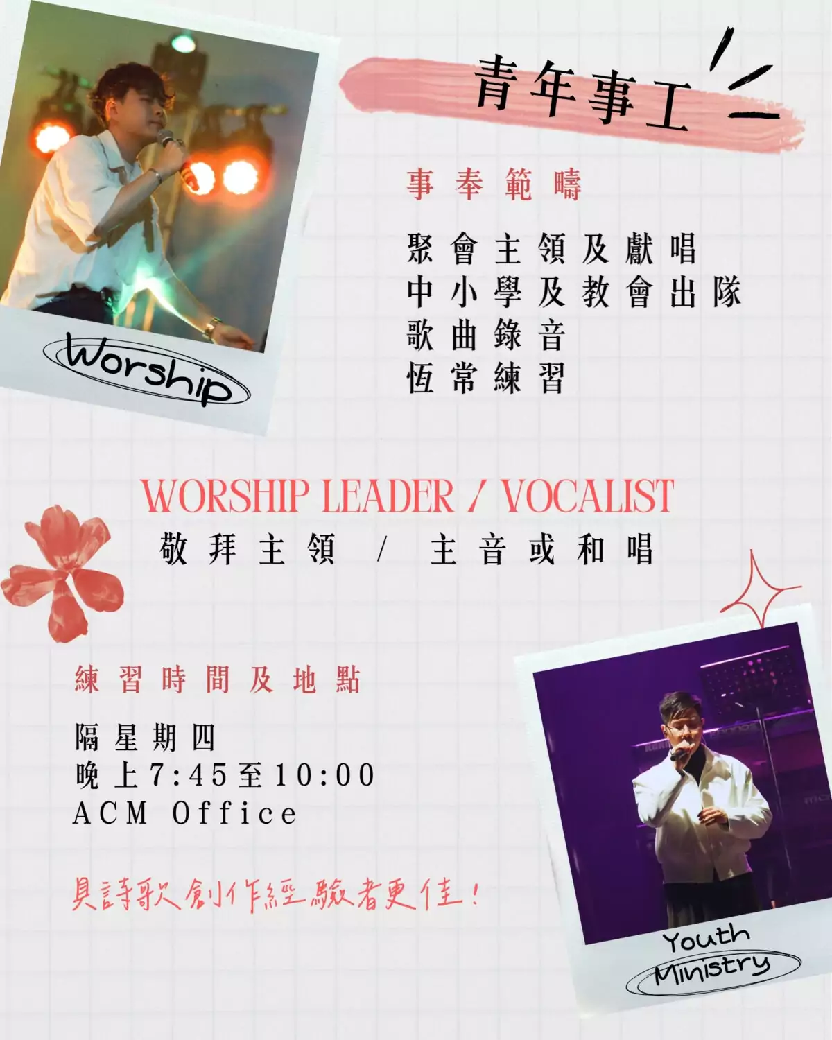 青年事工(敬拜主領、主音或和唱)